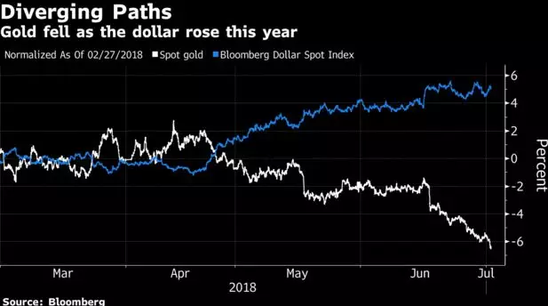 “美元已成为避险投资者的主要选择,”盛宝银行大宗商品策略主管Ole Hansen通过电邮表示。“地缘政治风险正在上升,债券和股票遭遇抛售,但黄金却在继续走低。”